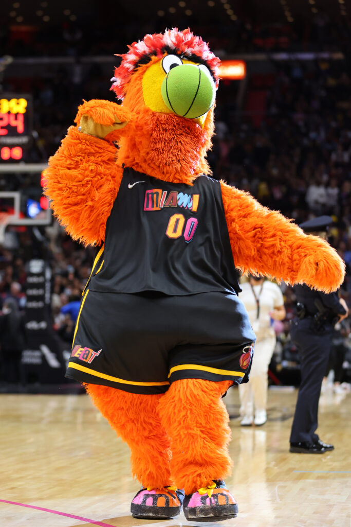The wholesome Burnie, an orange character and Floridian cousin to the Phillie Phanatic, has been with the Heat since the team’s inception. In the early years, Burnie got the crowd going, kept them hyped during the Shaq era and blew the roof off South Beach whenever the Heat was on the court. Designed by the team’s original owner, Ted Arison, Burnie has been a fan favorite since the very first game, known for being a fun time who gets a celeb-filled crowd to play along.